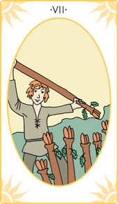 Die Sieben der Stäbe drückt die Kraft aus, auch unter schwierigen Umständen sein Ziel nicht aus den Augen zu verlieren. Trotz aller Willensstärke ist dieser Kampf aber nicht immer von Erfolg gekrönt. Halten Sie an an Ihrem Ziel fest und werden Sie Ihren Idealen nicht untreu. Die Tapferkeit gibt Ihnen den Mut, auch unter widrigen Bedingungen Ihren Weg zu gehen. Seien Sie allerdings darauf gefasst, dass Sie dabei auch scheitern können!